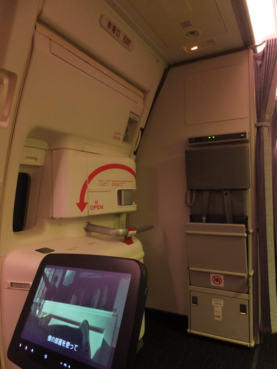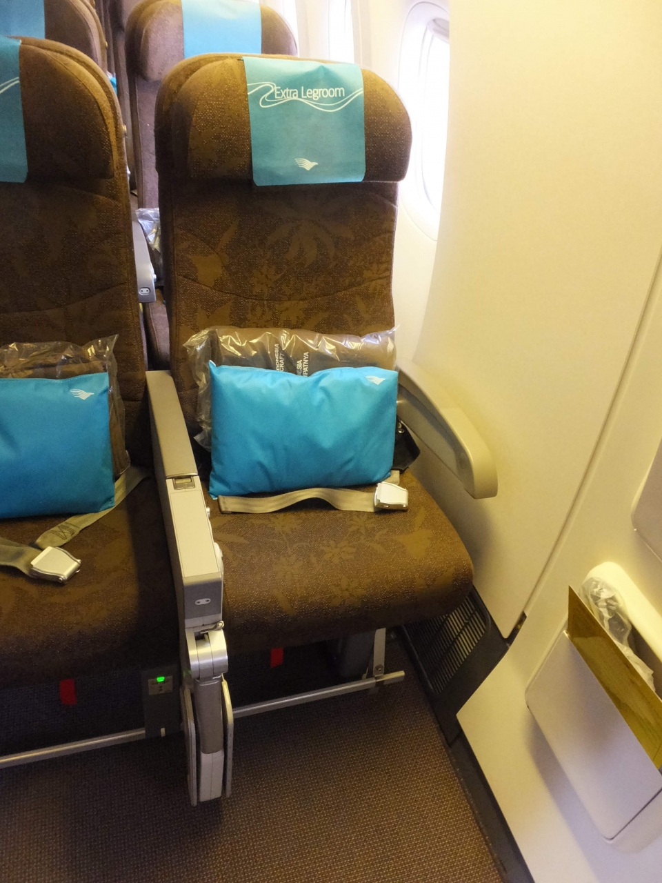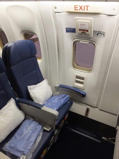 - 機材はB767-300ER。座席配置2:3:2の大型機。非常口座席の窓側に座ったがあまりにも寒かったので毛布を2枚借りた。