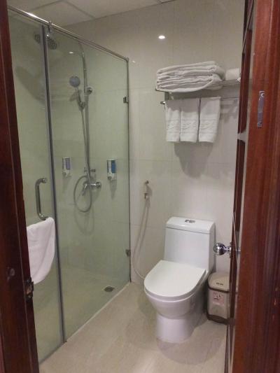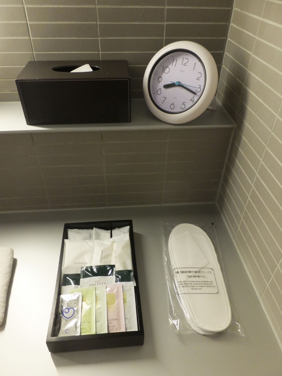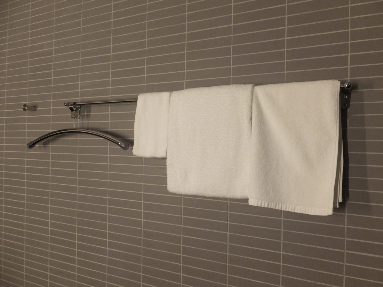 ハンドシャワー、レインシャワー、ハンガー、エアコン、扇風機、ドライヤー、バスタオル、フェイスタオル、ハンドタオル、バスマット、トイレ、ティッシュ、クレンジングオイル、ボディーソープ、洗顔料、シャンプー、コンディショナー、化粧水、乳液、フェイシャルコットン、綿棒、歯磨きセット、くし、ヘアブラシ、シャワーキャップ、ひげそり、シェービングクリーム…と、やっぱり至れり尽くせり。