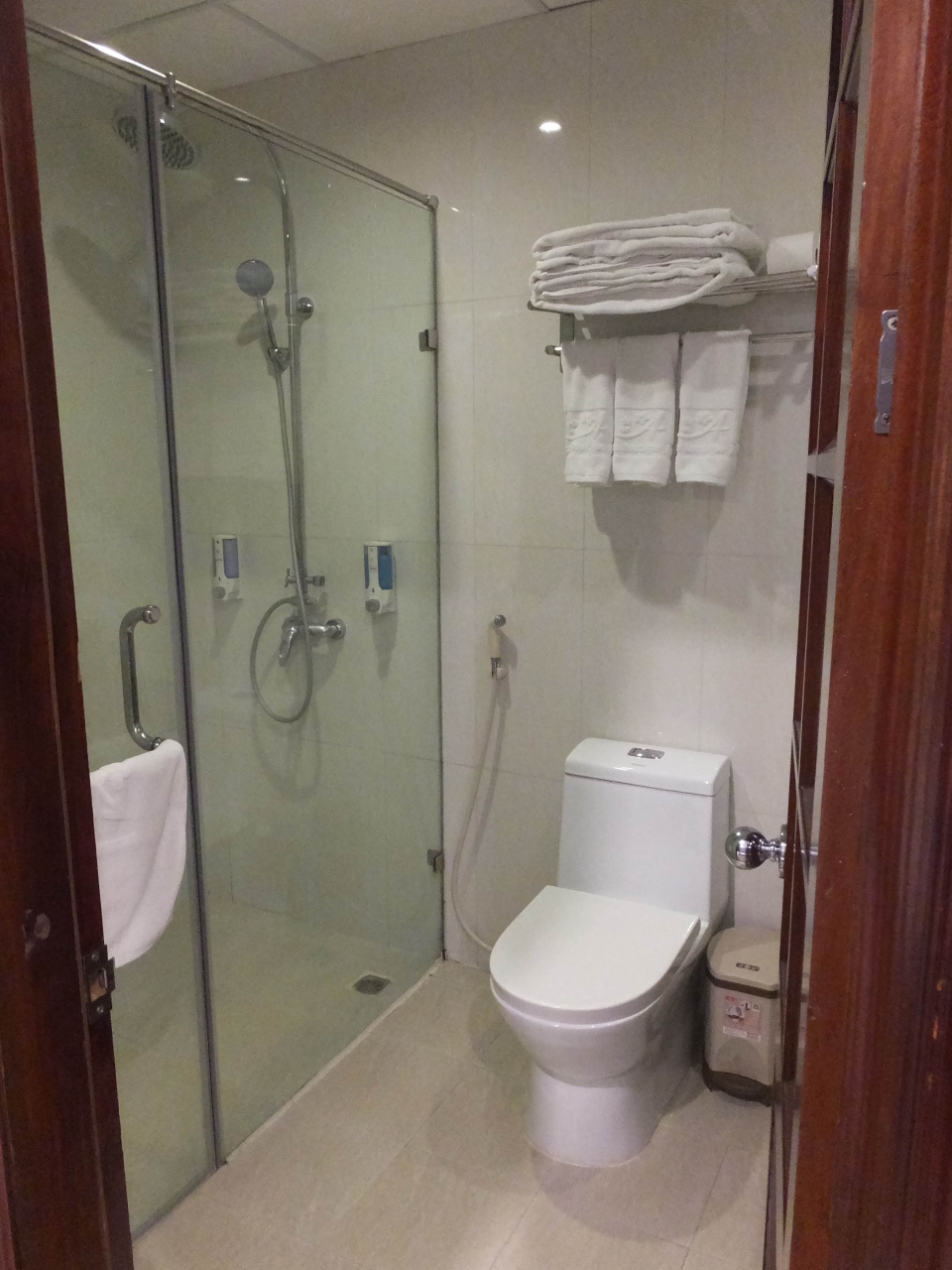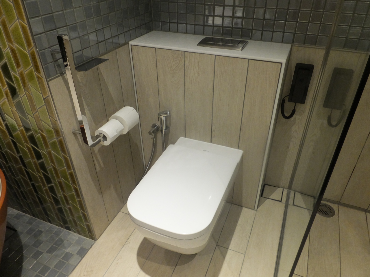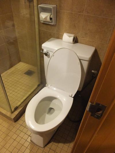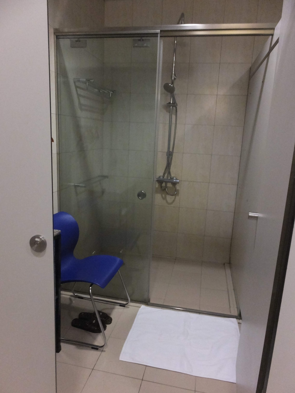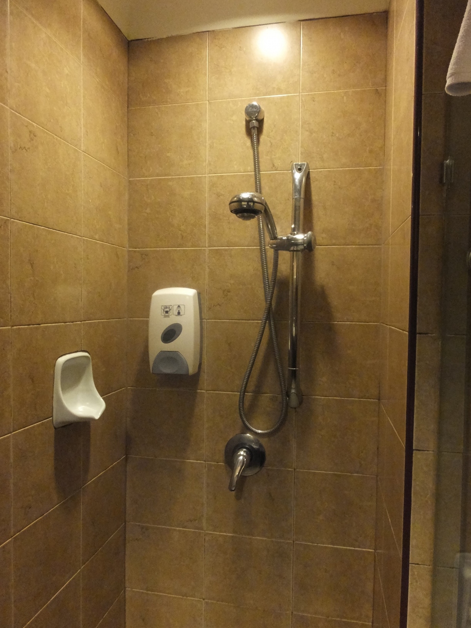 これから遅い時間になるに従って、ラウンジがどんどん混雑してくるにもかかわらず、シャワールームはトイレ内に2室しかありません。