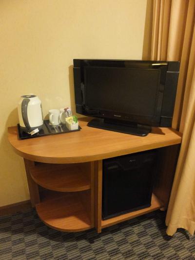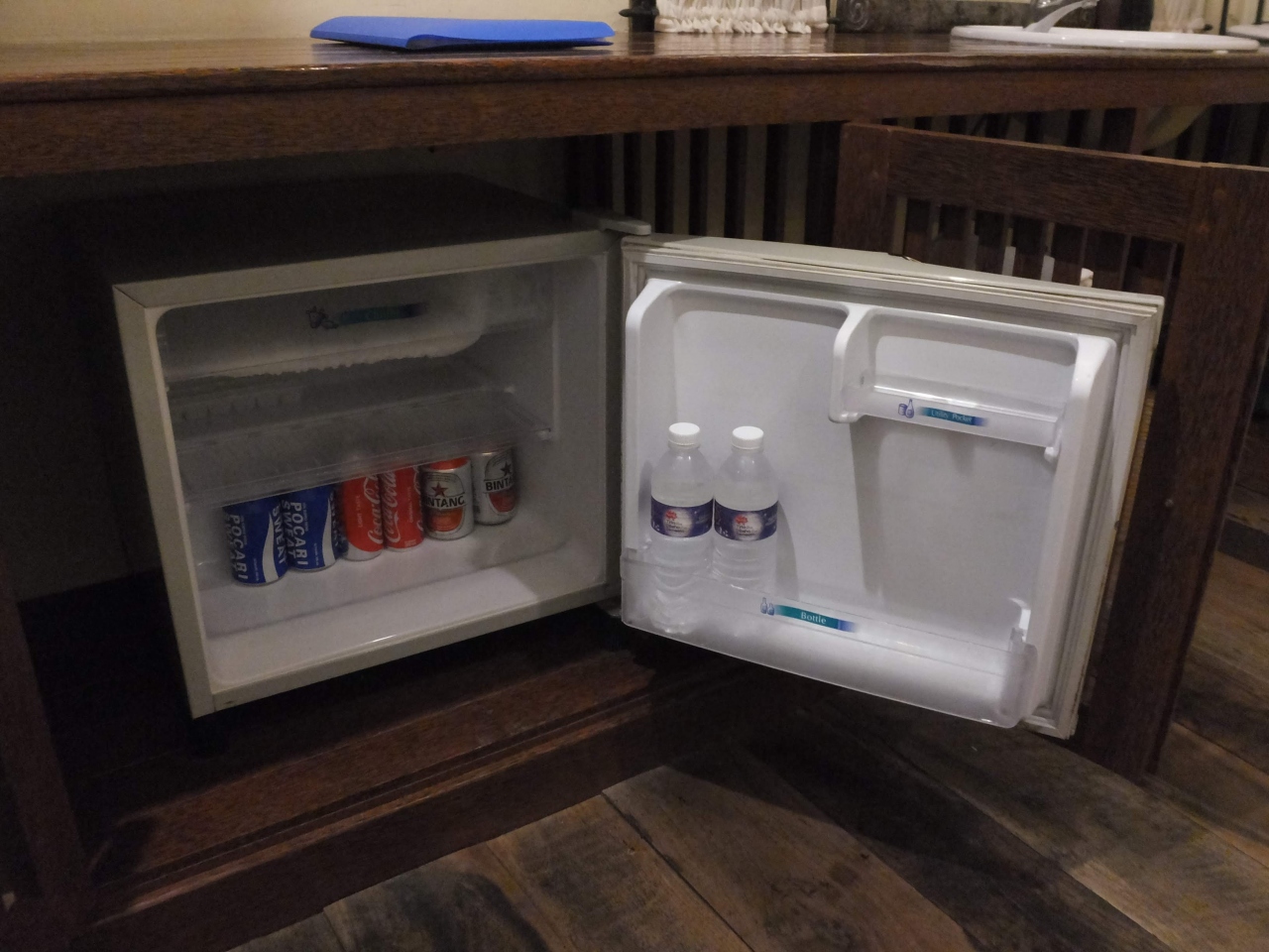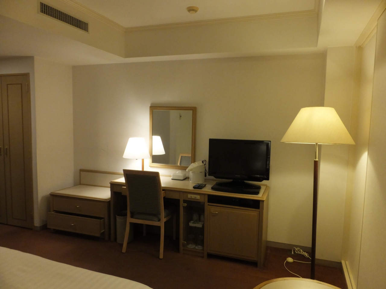ダブルベッド・シングルベッド・ベッドサイドテーブル・電話・ライティングテーブル・椅子・液晶テレビ懐かしいエアコン・クローゼット・室内金庫・ランドリーバスケット・電気ポット・カップ&ソーサー・ミネラルウォーター・スナック・インスタントコーヒー(3 in 1)・ティーパック(これらは無料・冷蔵庫内のドリンクは有料)