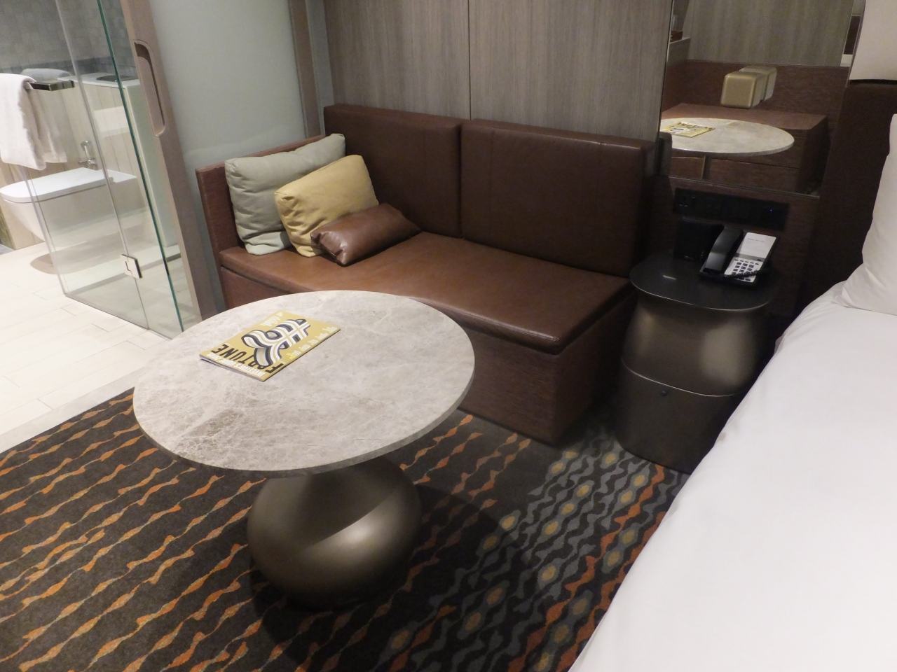 今回アサインされたのは最上階角部屋。前回のスイートルームとは打って変わってシンプルかつコンパクトな部屋だけれど、普段安宿ばかり泊まり歩いている私には十分過ぎる空間でした。