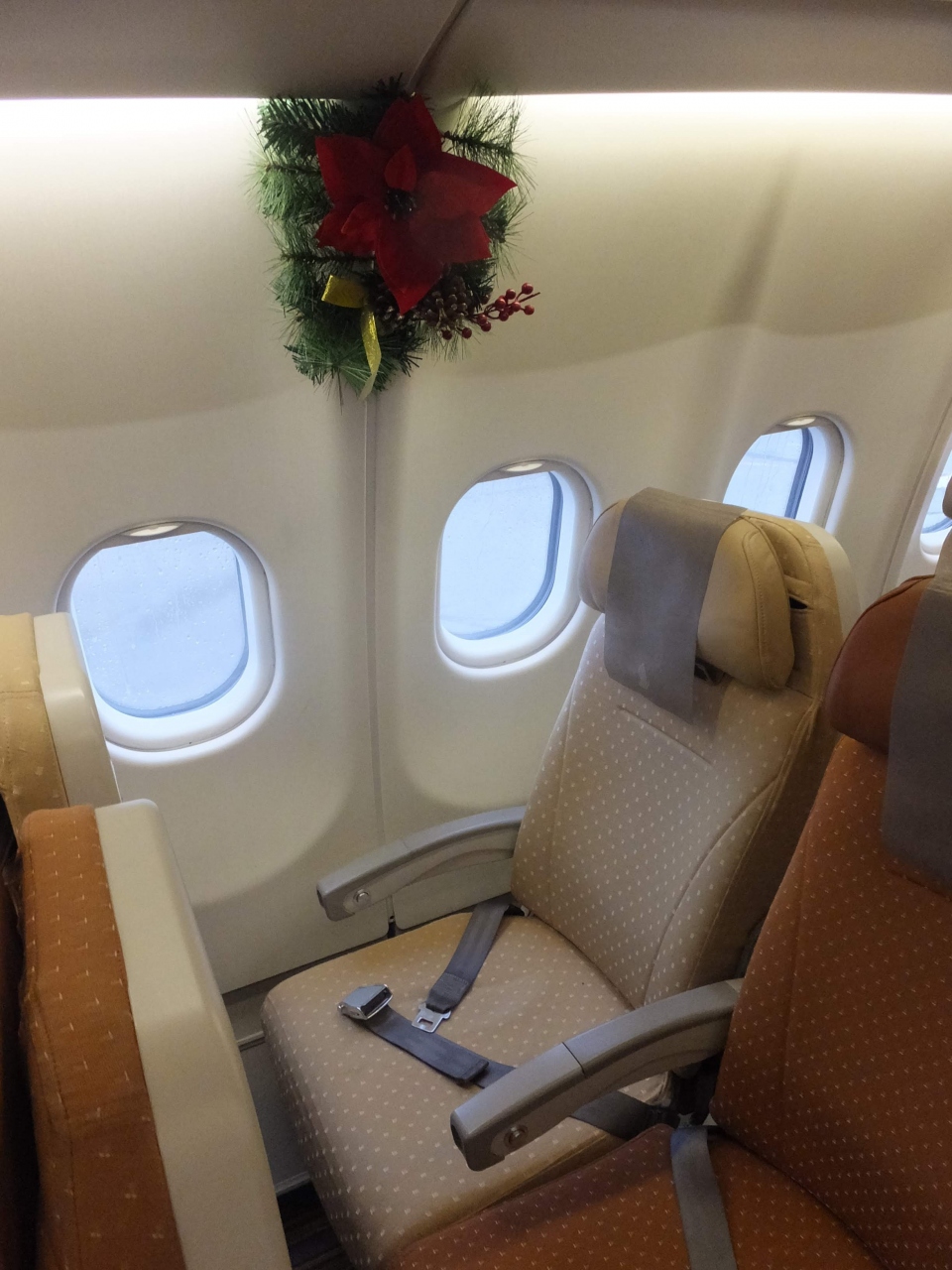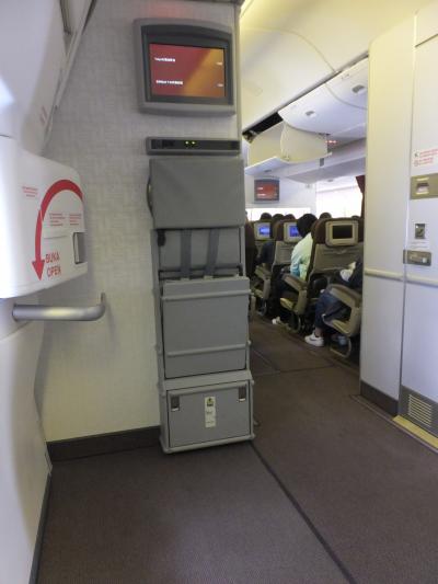 - 往復ともに機材はA330-300。座席配置2:4:2の大型機。案の定空席が目立った。