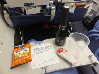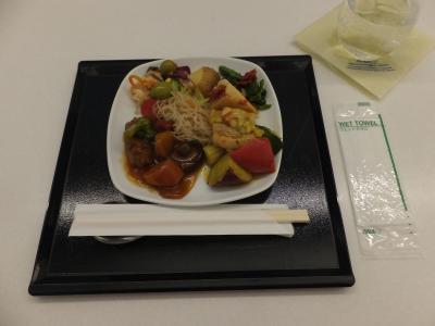 搭乗前にラウンジであれこれ飲み食いしてきたので、どう頑張っても今いただくのは無理。