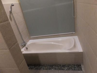 バスタブ・ハンドシャワー・ウォシュレット付きトイレ・洗面所・ドライヤー・バスタオル・フェイスタオル・バスマット・ボディーソープ・シャンプー・コンディショナー・歯磨きセット・ヘアブラシ・シャワーキャップ・髭剃り・綿棒