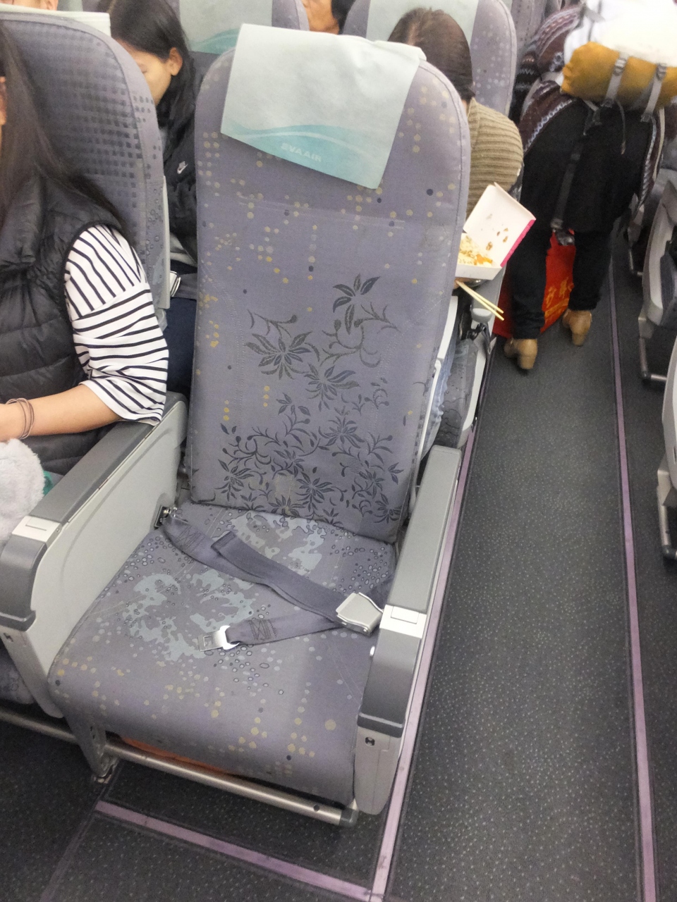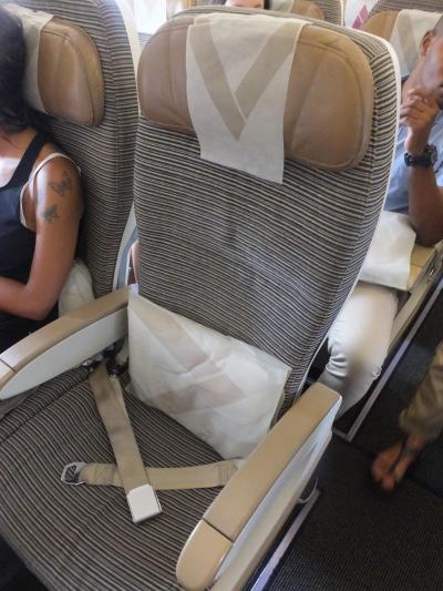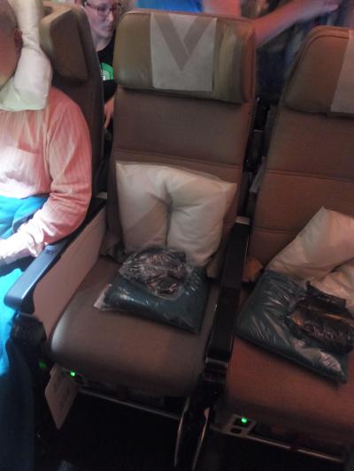 満席だったが非常口座席の真ん中をどうにかゲット。