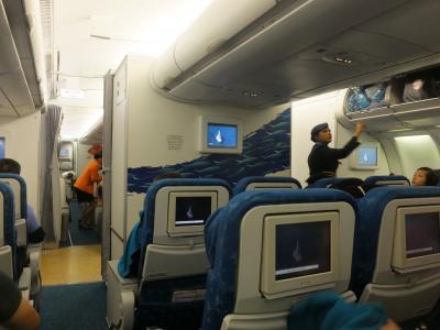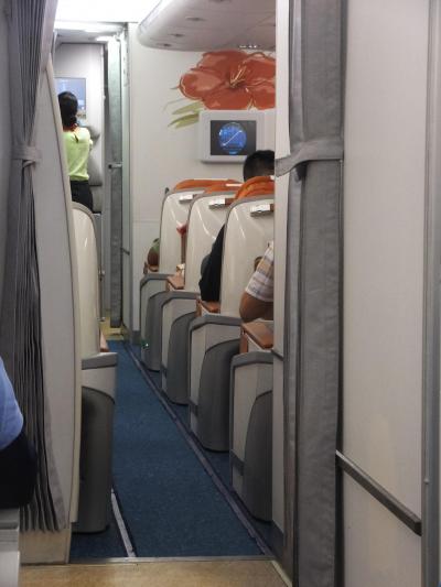 - 機材はA330-200。座席配置2:4:2の大型機。パーソナルモニター付き。