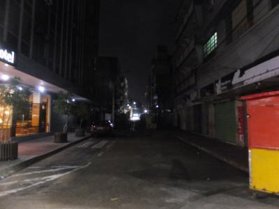 立ち並ぶビルの商店には鉄格子が厳重に張り巡らされ、照明も少なく真っ暗な通りがいっぱい。