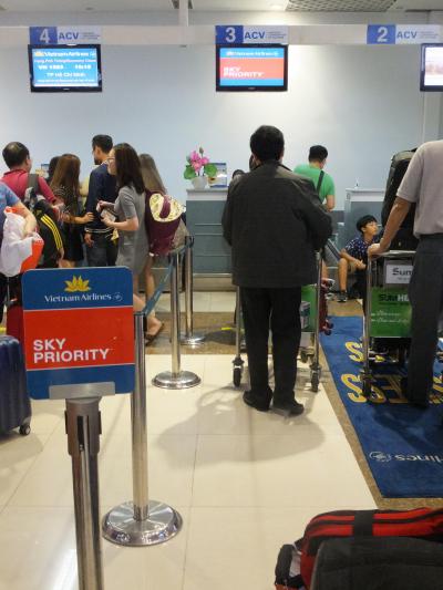 保安検査場を抜けてすぐ左手にラウンジがありました。ベトナム航空ビジネスクラス客と、スカイチームエリートプラスメンバーで、24時間以内にベトナム航空の国際線に乗り継ぐお客のみ利用出来ます。ただとても狭いので相席必須です。- 旅行時期