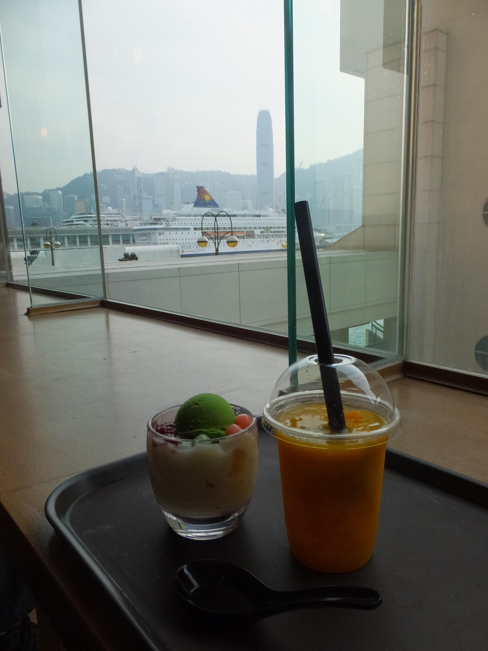皇家太平洋酒店(ロイヤルパシフィックホテル)の裏側にあり、一大ショッピングモール「ハーバーシティ」も目の前。でも一番印象的だったのはここから眺めた香港島の絶景。