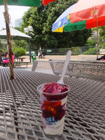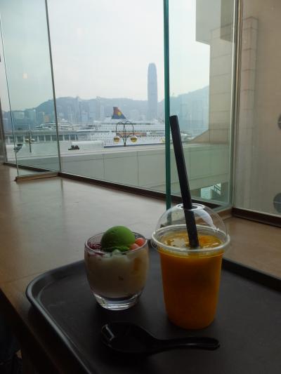 様々なお店がありましたが、私の目当ては香港の人気デザート屋さん「満記甜品」(Honeymoon Dessert)。抹茶豆腐花と芒果西米露(タピオカ入りマンゴードリンク)を注文。どちらも$35(約\525)とやや高めですが、文句無しの美味しさでした。- 旅行時期