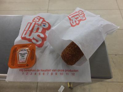 自動販売機で売られているコロッケ…私がオランダで是非食べてみたかったメニューです。今回、アムステルダム中央駅構内でお目にかかることができました(^ー^)