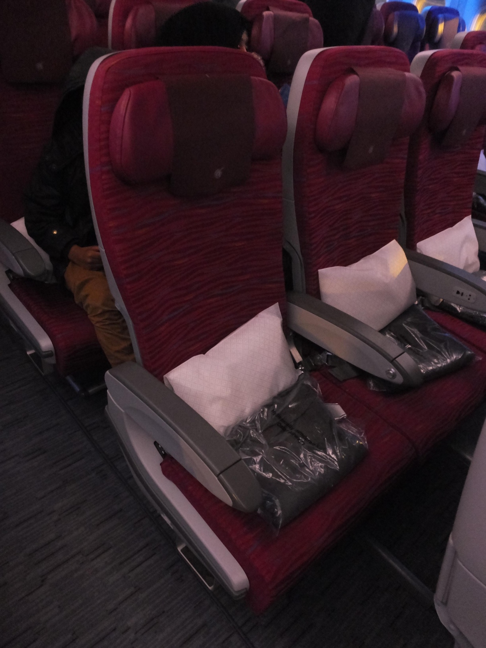 定刻より6分の早発。後方は空席あり。しかも私の列は全て空席で夢のエコノミーフラットが実現(^^)