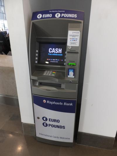 ジブラルタル空港の税関を出てすぐ右側(アライバルエリア)にATMがありました。しかもこのATM、ポンドとユーロの両通貨で引き出せるという優れもの。私はスペイン側のホスタルに泊まる予定だったので、ここでユーロを引き出して行きました。