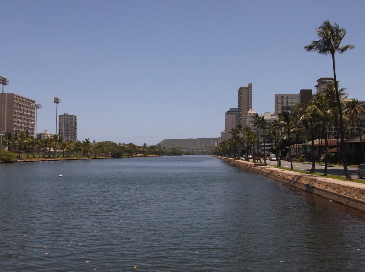 ワイキキのカラカウア通りとクヒオ通りの北を並行して流れる運河です。ala waiのwaiとはハワイ語でwaterの意味だそう。