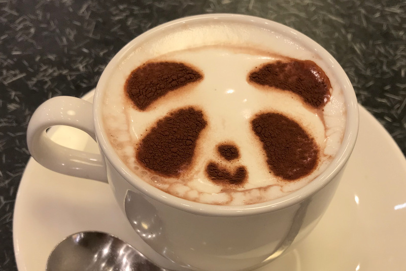 注文したのはホットのココア。ココアパウダーでパンダの顔が描かれています。チケ得を利用して100円引きでした。- 旅行時期
