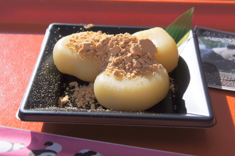 動物園らしいオリジナルメニューもあり、今回はその中から『パンダだんご』を注文しました。リーリーやシンシンも食べている飼育係特製のお団子を人間用に味付けしたものです。
