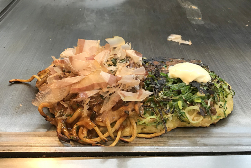 すじコンねぎ焼きとミックスモダンのハーフ&ハーフを注文。色々食べたいけれど、ひとりだと品数食べられないので嬉しいメニューでした。- 旅行時期
