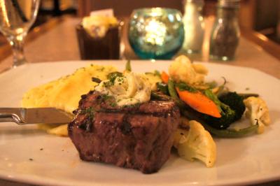 ミディムレアのハーブバター、サイドはグリル野菜とマッシュポテトを選びました。マッシュポテト、案の定とても量が多い!