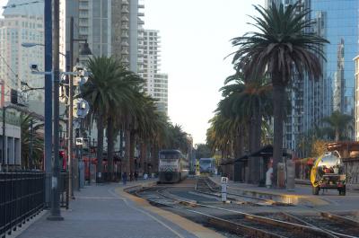 各種サンタフェ駅まで徒歩10分未満、トロリーのリトルイタリー駅まで5分程度で行けます。サンタフェ駅方面は再開発中で少し閑散としており、利用するならリトルイタリー駅がおすすめ。道中は飲食店が多いので暗くなっても賑やかです。