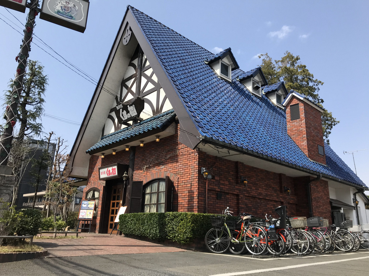 青い屋根と赤いレンガの山小屋のような本館。中世ヨーロッパのお城のような別館。裏の駐車場にそびえる大きなくすの樹。特徴的な佇まいから雑誌やドラマに登場することも多く、周辺のランドマーク的な存在です。