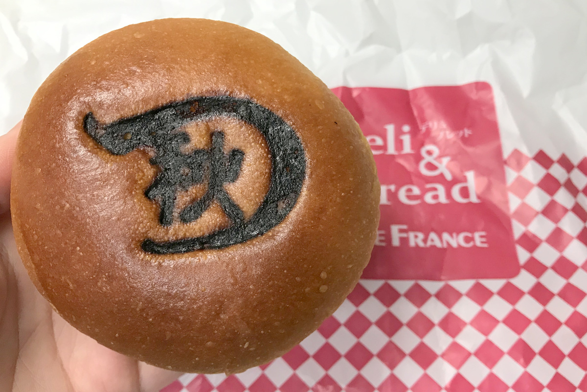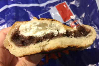 購入したのは焼き印入りの『石窯秋津あんぱん』。リニューアルを期に登場したと思われます。『秋』の文字を覆う大きな『つ』。最近の焼き印はデザインが凝っていますね。中身は粒あん&ホイップクリームがたっぷり詰まっています。