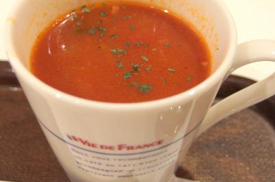 マグカップに入ったミネストローネは具沢山でビックリ! 野菜やマカロニ、雑穀まで入って予想以上のボリュームでした。- 旅行時期