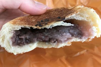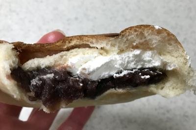 購入したのは焼き印入りの『阿佐ヶ谷』あんぱん。ですが、焼き印は七夕と笹。阿佐ヶ谷と言えば七夕祭りで有名だからでしょうね。中身は粒あん&ホイップクリームがたっぷり詰まっています。