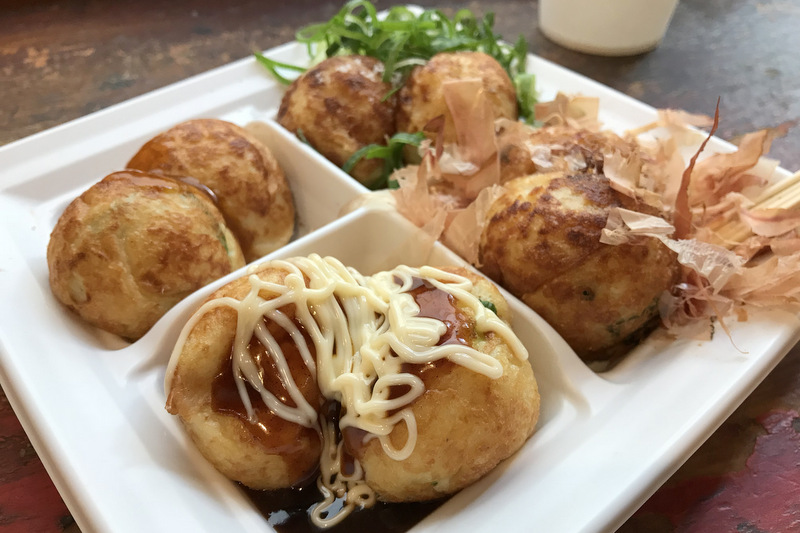 定番のソース&マヨネーズ、醤油&カツオ節、ネギ塩、そして期間限定。この時はカレーでした。