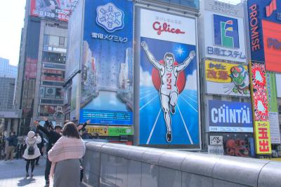 道頓堀といえばグリコの看板。グリコの看板といえば同じポーズで記念撮影。順番待ちが発生するほど多くの人が写真撮影に興じていました。