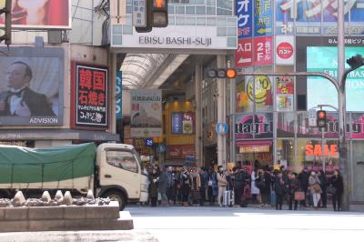 大阪へは何度か旅行していますが、海外旅行客で大混雑と聞き、避けていた道頓堀。なんば周辺で時間を持て余していたので寄ってみました。