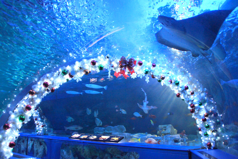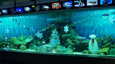 12月だったこともあり、クリスマステーマの水槽は今流行のSNS映え抜群でした。