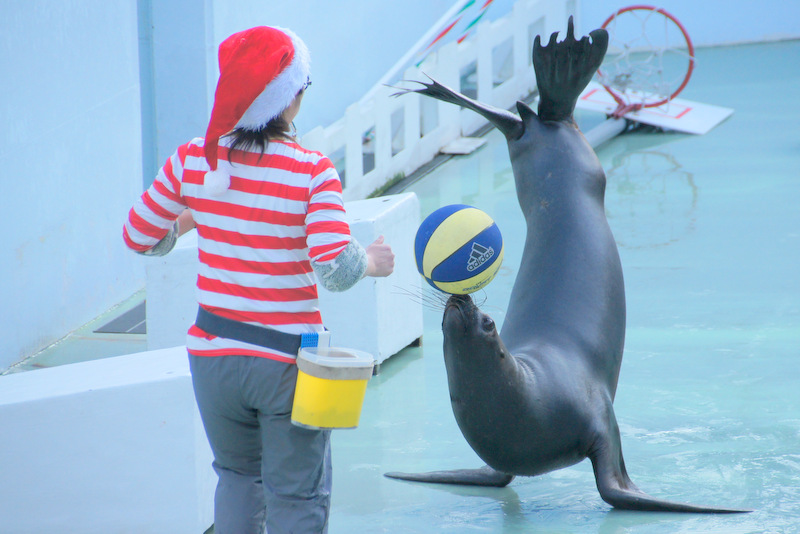 イルカとアシカ(オタリア)のショー、エイやウミガメも泳ぐ大水槽での水中ショー、サメのイメージを具現化したような風貌のシロワニ、巨大な淡水魚ピラルクー、人気者のペンギンやアザラシなどなど。