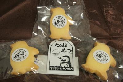 直江津の商店街はマゼランペンギンの町(市内にある水族館がマゼランペンギン飼育数日本一のことから)として活性化を目指しており、色んなお店にポスターが貼ってあるほか、ペンギンモチーフのグッズも販売しています。