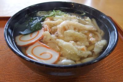 かき揚げとワカメ、渦巻き模様も独特なカマボコが入っていました。- 旅行時期