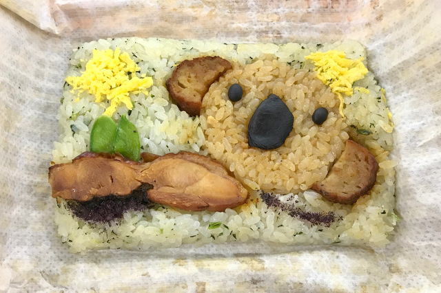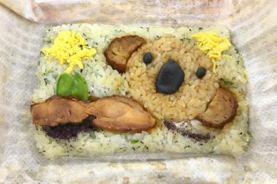 行楽気分を盛り上げたければ、ここでしか販売されていない竹皮コアラ弁当を。まぜご飯とおかずでコアラが描かれています。