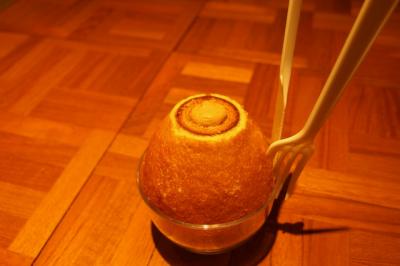 エッグバウムのキャラメルをひとつ購入し、お店の奥にあるイートインスペースで食べました。