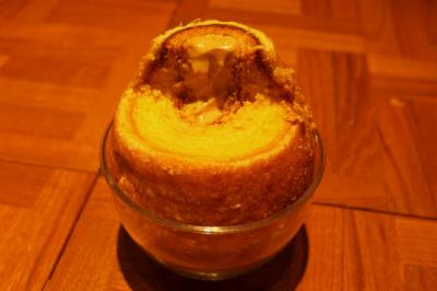 『カスタメロン』は、お店のキャラクターの顔が描かれたメロンパン。イースターの期間限定になっていました。モチモチのパンにクリームが入っています。
