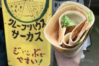看板にあるとおり、よく見るクレープよりも1周り大きくボリュームたっぷりの具が入っています。生地はモチモチでやや甘く、定期的に食べたくなる美味しさ。