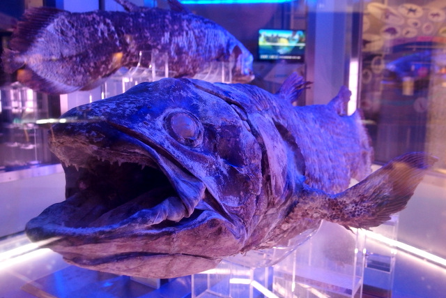 常設展示のシーラカンスは剥製3体、冷凍標本2体。一般人が冷凍標本を見られるのは世界でもココだけなので必見です。