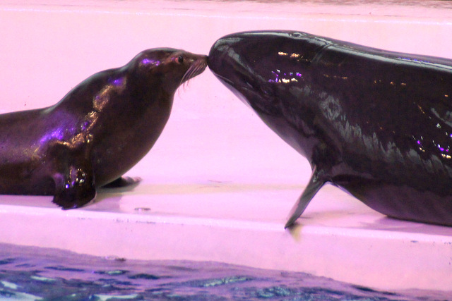 『オーシャンライブ』には、カリフォルニアアシカとハンドウイルカ、カマイルカ、オキゴンドウが登場し、レベルの高い技の数々を披露してくれます。休日は定員に達することもあるので早めに席の確保を。