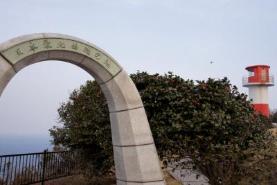 碑の近くには、灯台や戦前の軍事施設跡(砲台や観測所など)もあります。あいにくの曇り空で韓国は見えませんでした。