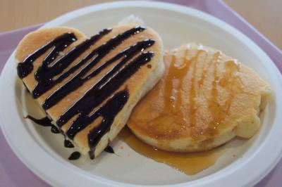 パンケーキ:バレンタイン限定のハート型とマンボウ型のふたつが