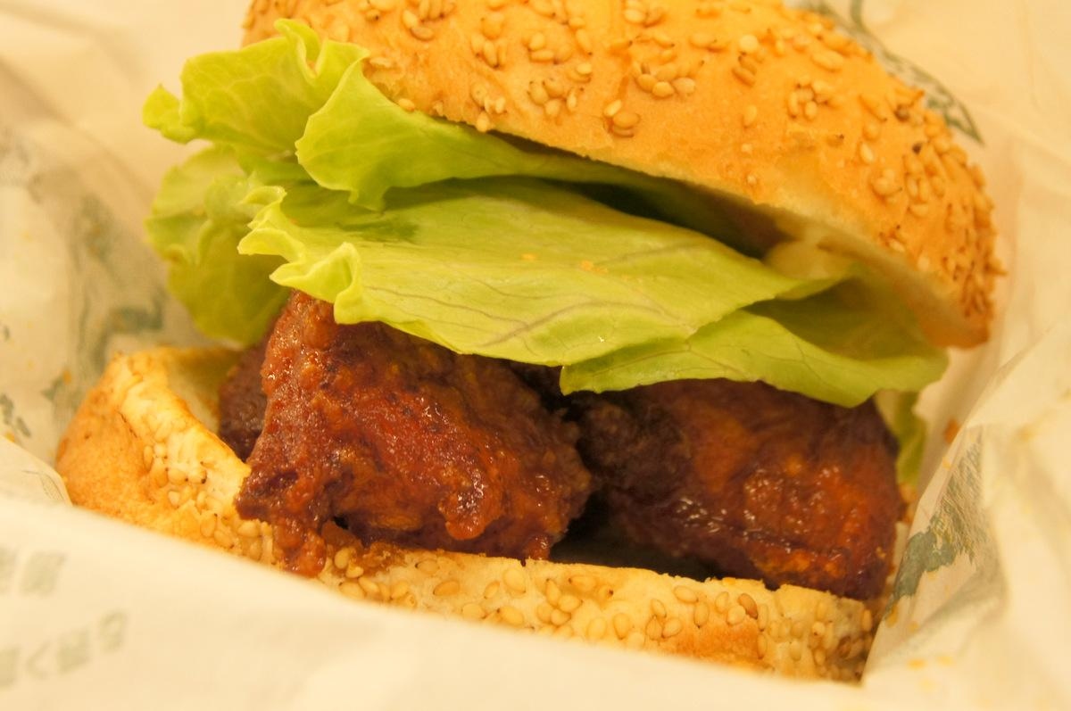 揚げたてアツアツの唐揚げ(3個)とレタスだけのシンプルなハンバーガー。甘辛いタレとマヨネーズ、バンズのゴマもよく合います。ボリュームがあって、バーガーとドリンクだけでお腹いっぱいになりました。- 旅行時期