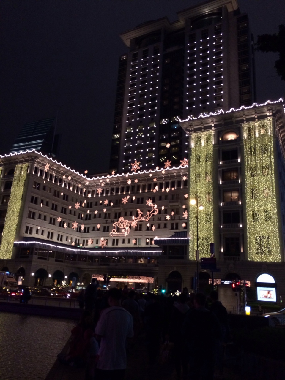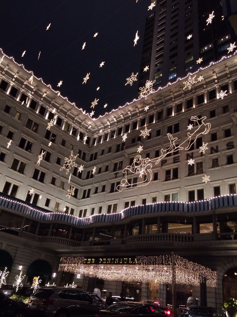 やはり天下のペニンシュラですね。クリスマスイルミネーションが本当に綺麗でした。建物の重厚感と品の良いトラディショナルなイルミネーション。カラフルな電球を使用せず、単色なのがかえって大人のイルミネーションを生み出している気がします。