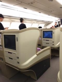 2015年11月から新規導入されたという機材はとても新しく、シートもフルフラット。ウェルカムドリンクはシャンペンなど、格安航空会社とは思えないサービス内容で全く遜色ありません。強いて言えば、機内食が少しさびしかったかな。