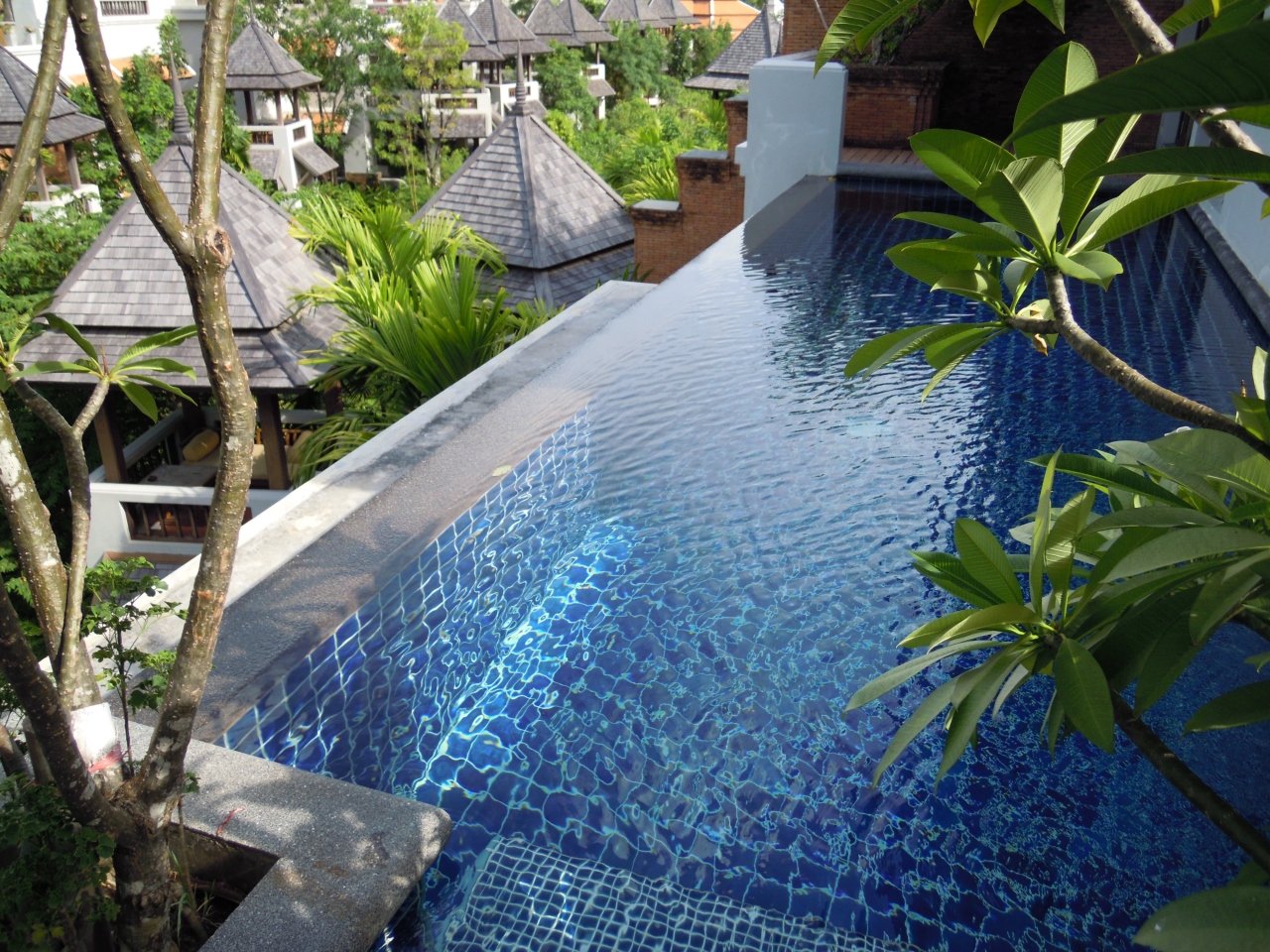 3階にあるため眺望もよく、広さは長さ7メートルくらいでしょうか。サムイのプライベートプールの中でもとても広いほうだと思います。