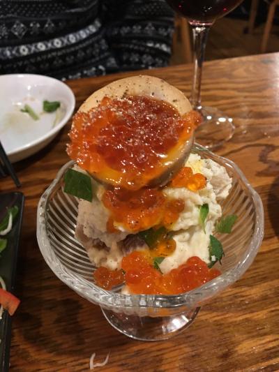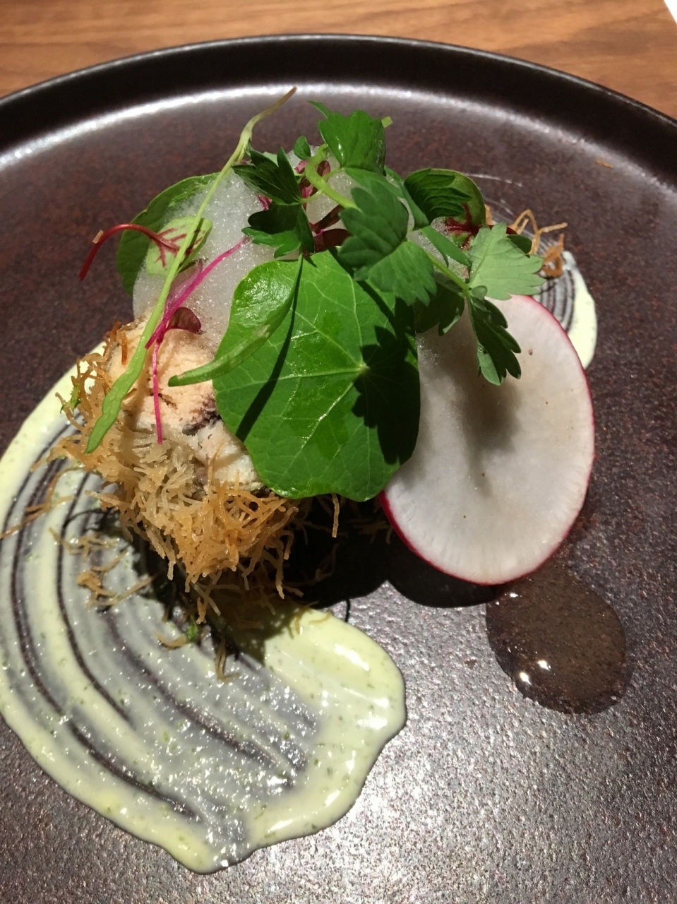 今回注文したのは7,000円のコース料理。まずアミューズがでて、そのあとスープ、お魚料理、お肉料理と続くフルコースです。今回気に入ったのが「子持ち鮎のパリパリ焼き」。子持ちししゃものように沢山の卵をつけた鮎の回りに細かく刻んだ麺をまぶし、カリカリに焼いたメニューですが、外側のパリパリ感と卵のふんわり感など、とにかく触感が良く美味しくいただけました。メインの肉料理は鶏肉だったのですが、インパクトが弱く、あまり印象に残りませんでしたね。全体的に量も少なく、本当に価格に見合った料理なのか疑問です。再訪はないですね。- 旅行時期