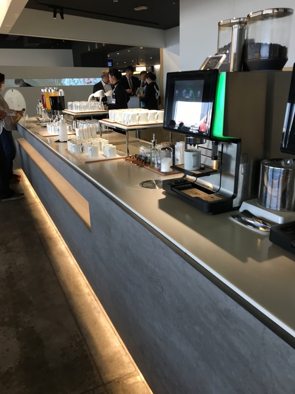 羽田空港第1ターミナルを利用した際、訪問しました。2017年に新しくできたラウンジのようですね。場所は第1ターミナル8番ゲートと9番ゲートの間。他ラウンジのようにクローズタイプではなく、オープンスタイルでまるでカフェのような雰囲気です。横長のスペースに、窓際カウンター席・手前の大型丸テーブル・奥の少し暗めにしたスペースが配置されています。各々の席にはコンセントとUSBがあり、搭乗前の充電タイムとしても利用価値大です。ドリンクもジュース類・コーヒー類など複数あり、スナック類はないものの国内線の待ち時間としては十分な内容ではないでしょうか。個人的には今まで利用したカードラウンジの中では良いほうだと思っています。