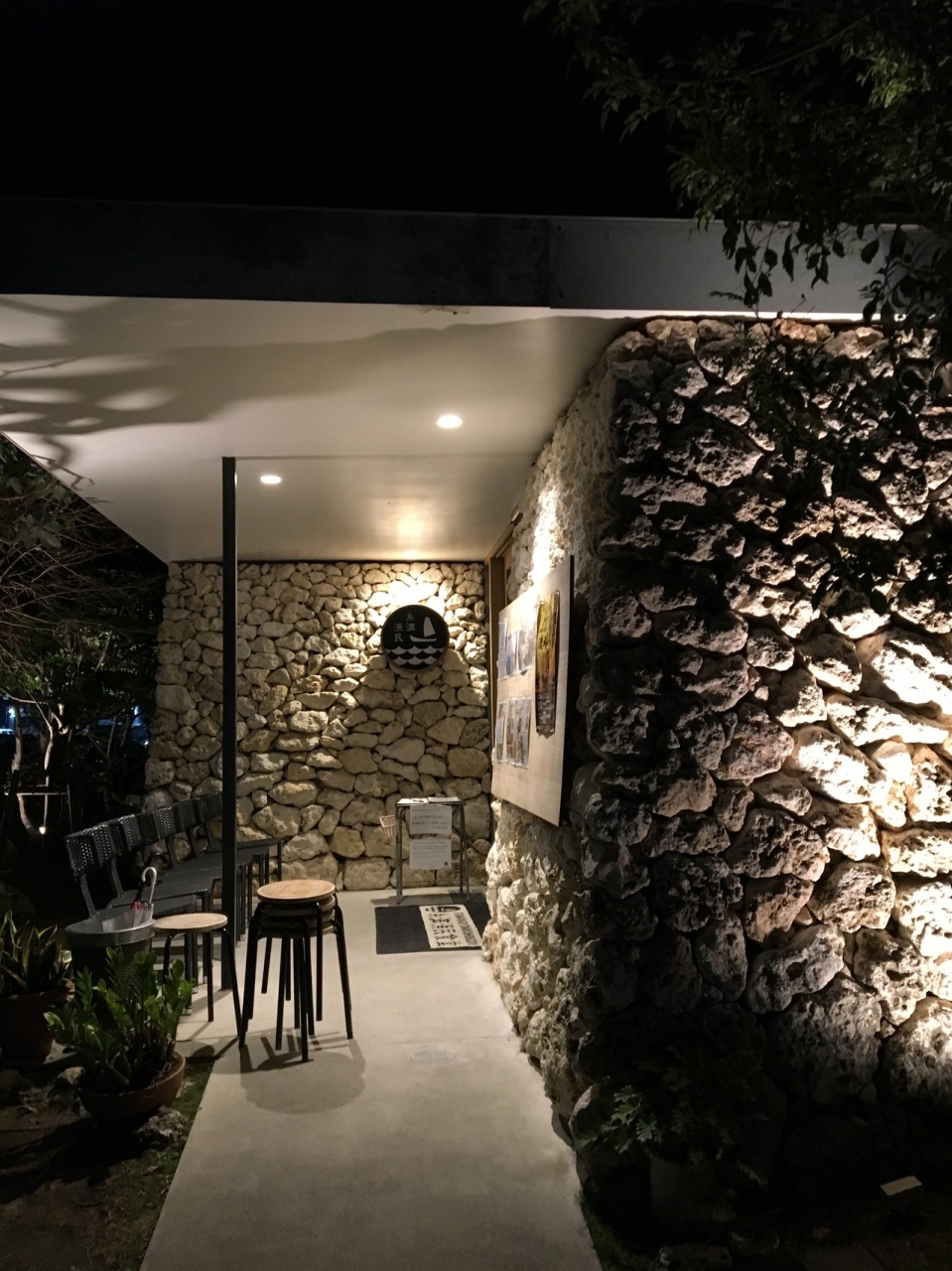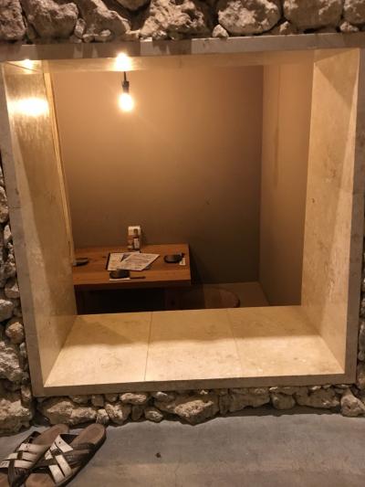 糸満の倉庫街にあるお店です。食堂近くのホテルに滞在していたので、最初の晩に事前予約して利用しました。噂通り、とてもお洒落なお店です。また、大変な人気店です。18:30に予約しましたが、ほぼ全席満席でした。正直、こんな倉庫街になんでこんなお店があって、なんでみんな知ってるの?と思うほど、素敵な店です。