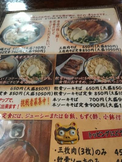 注文したのは、三枚肉そばと軟骨ソーキそば。軟骨ソーキはそばの上でなく、お皿に乗って出てきましたが、かなりの量でした。が、これがトロトロに煮てあり、とても美味しかった~~。そば梅雨も出汁感が良く、夫婦共に飲み干してしまいました。